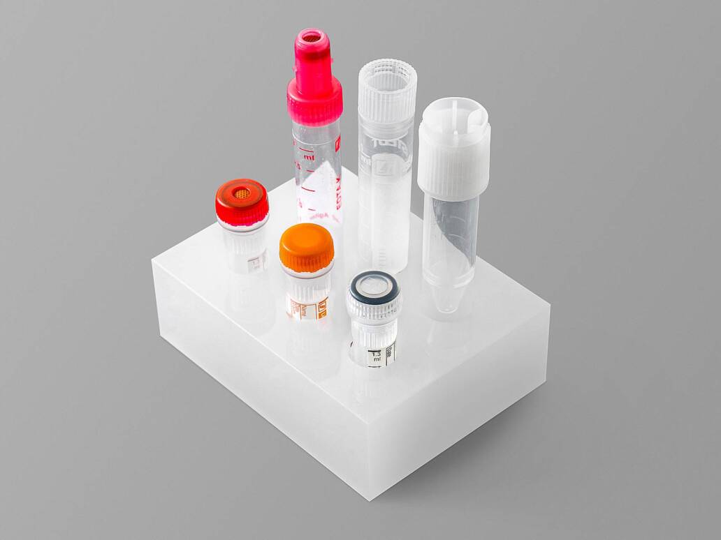 Standfester Blutröhrchenhalter aus Kunststoff für die einfache und sichere Handhabung der Blutröhrchen während der Blutentnahme.